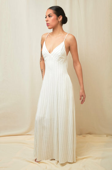Quiet Luxury Ivory Backless Linen Maxi Dress
