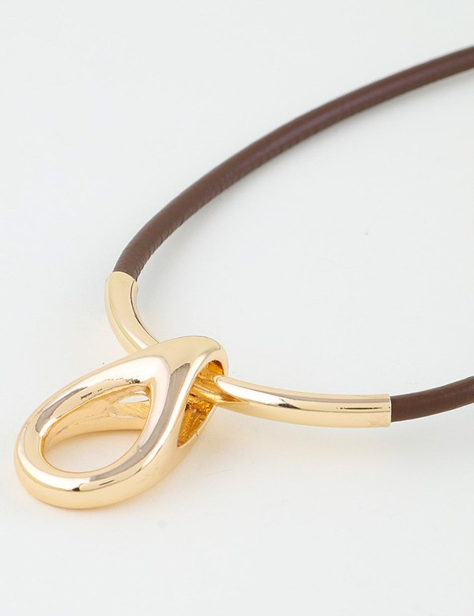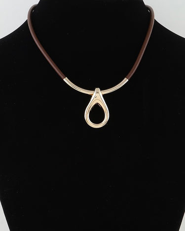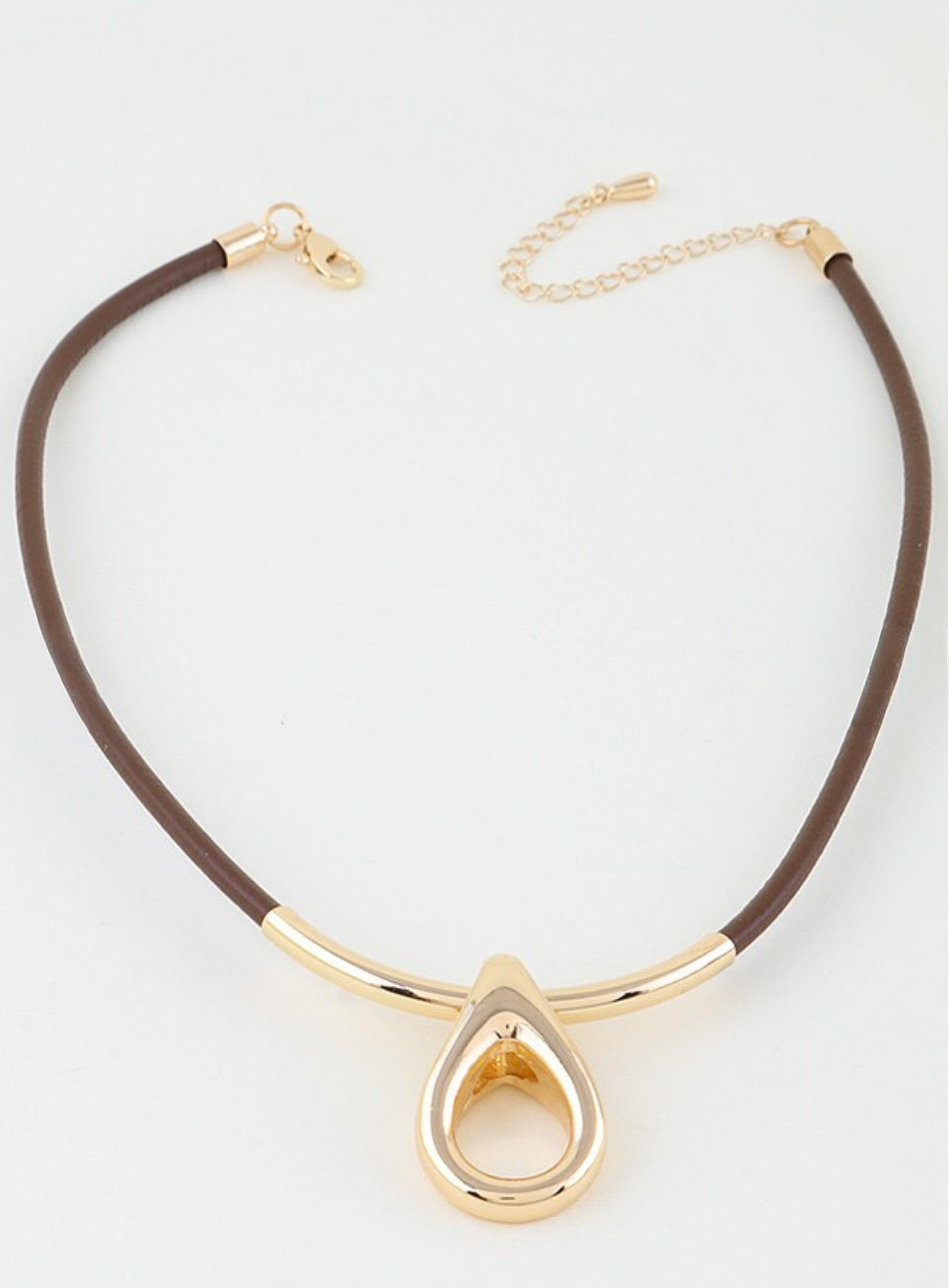 Elevate your accessories collection with this gold teardrop pendant necklace, a modern statement piece that blends fashionable flair with contemporary design. Featuring a polished gold-tone teardrop pendant, this necklace exudes chicness while maintaining a sleek, minimalist appeal. The pendant is suspended from a cord, accented with a gold-tone curved bar detail that adds structure and balance. The design is completed with an adjustable chain extender and secure lobster clasp, ensuring both comfort and versatility for various necklines.