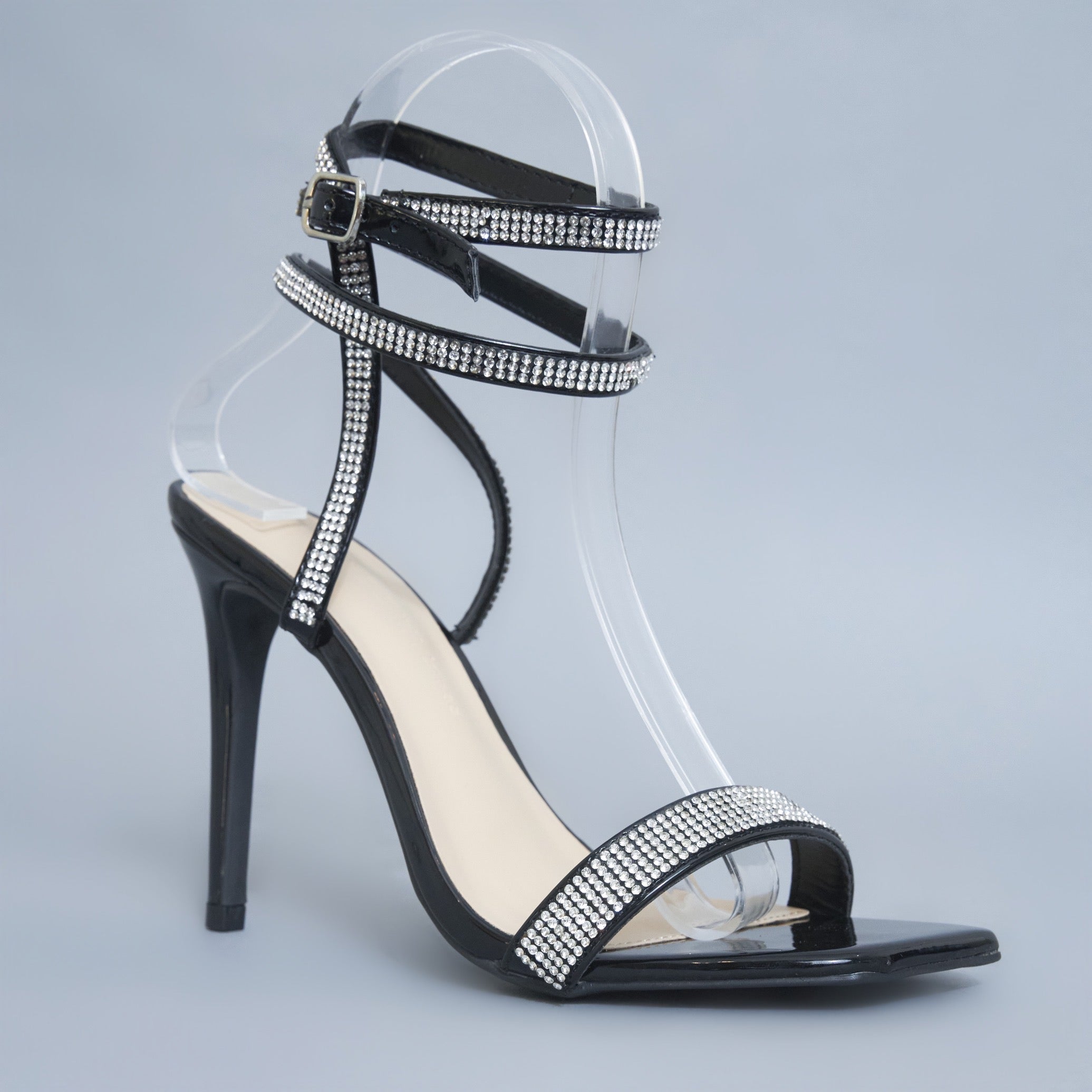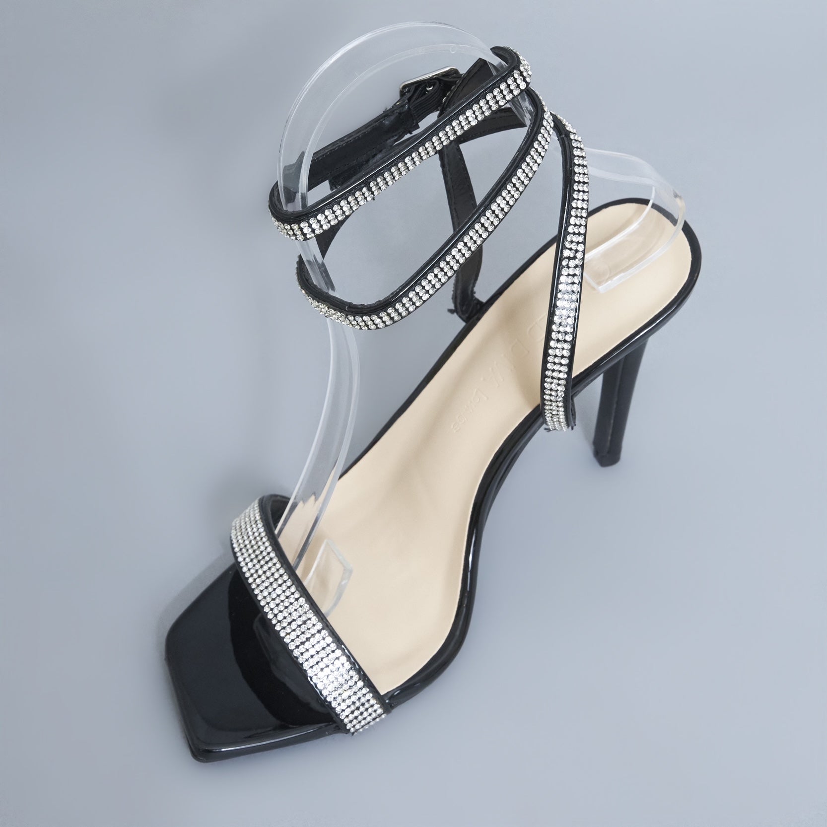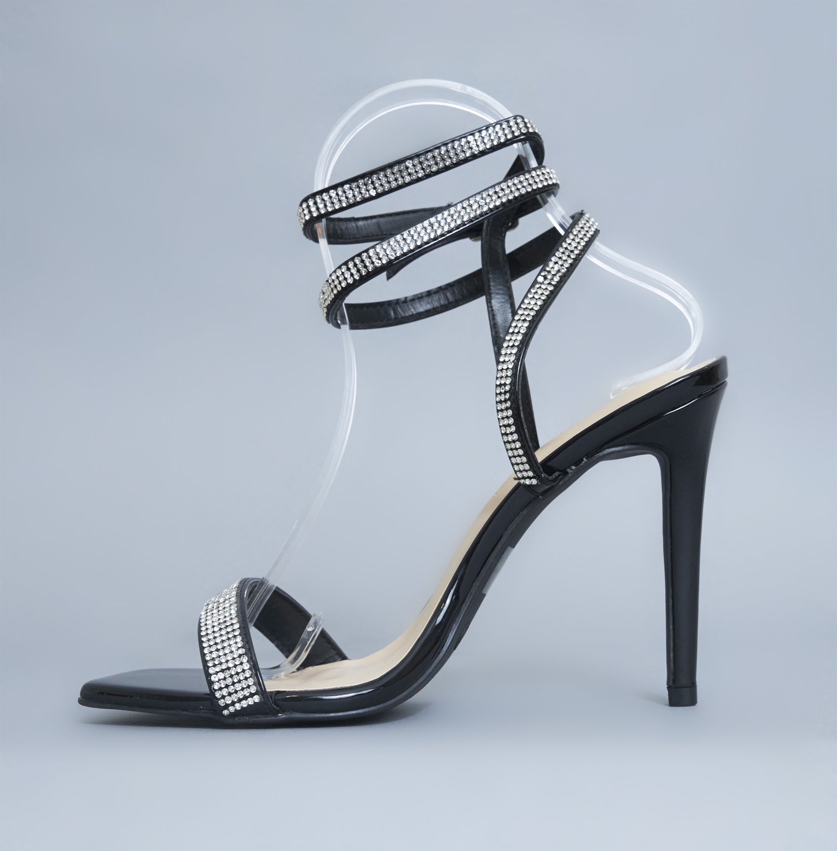 Gia Black Rhinestone Ankle Strap Dress Heeled Sandals