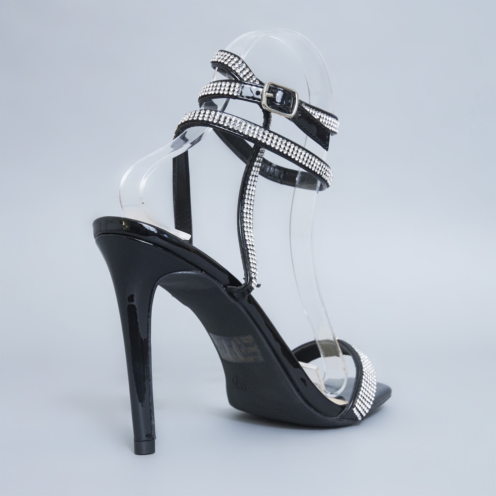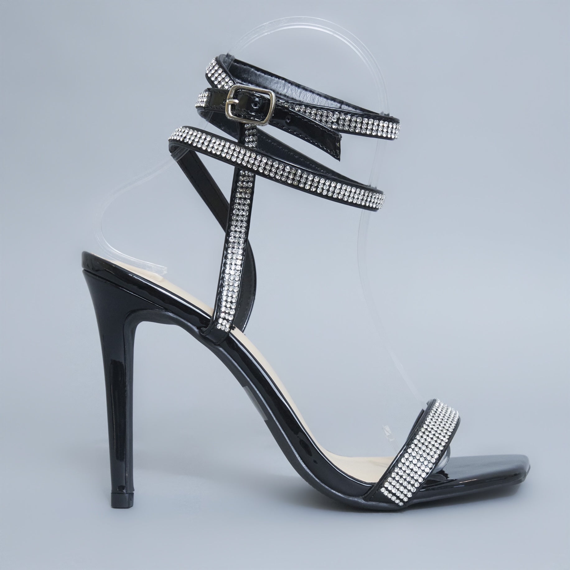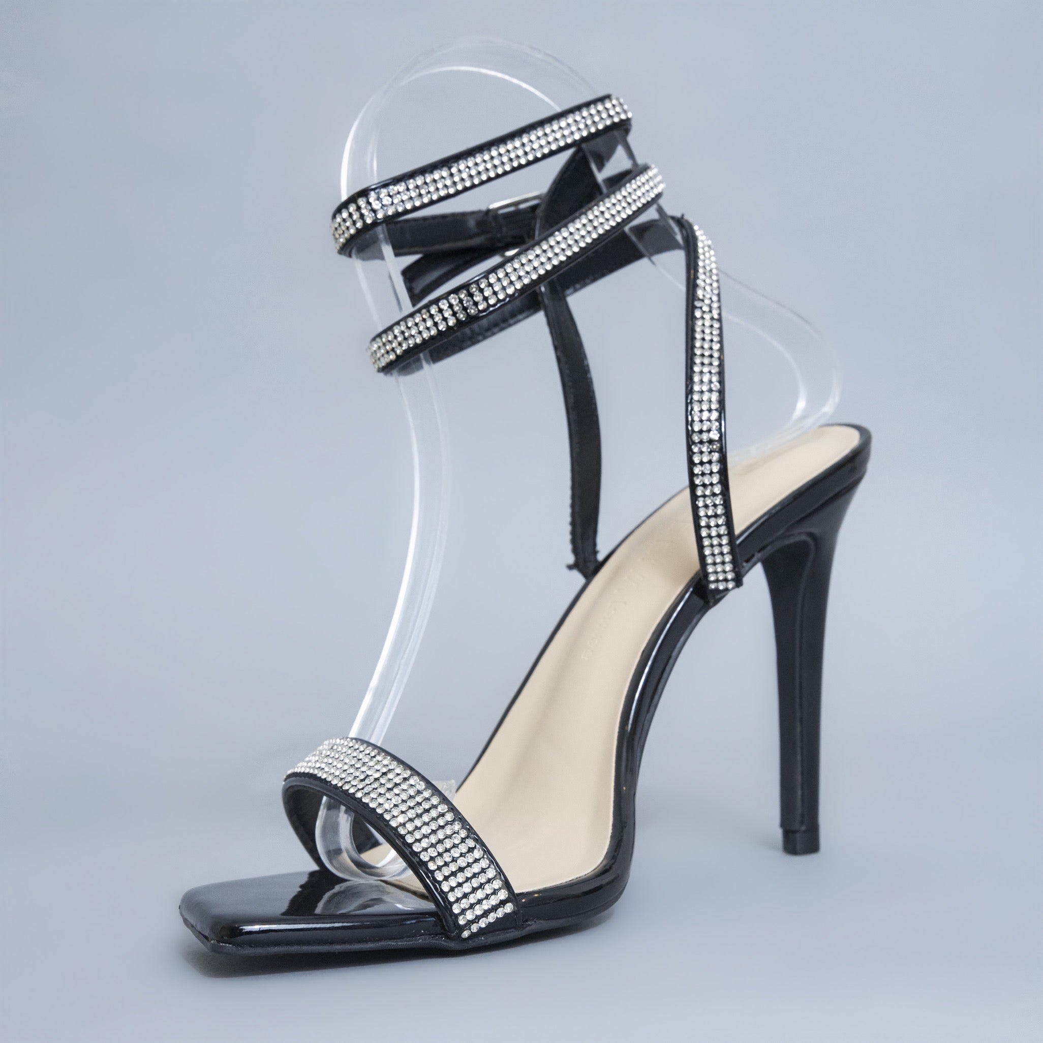 Gia Black Rhinestone Ankle Strap Dress Heeled Sandals