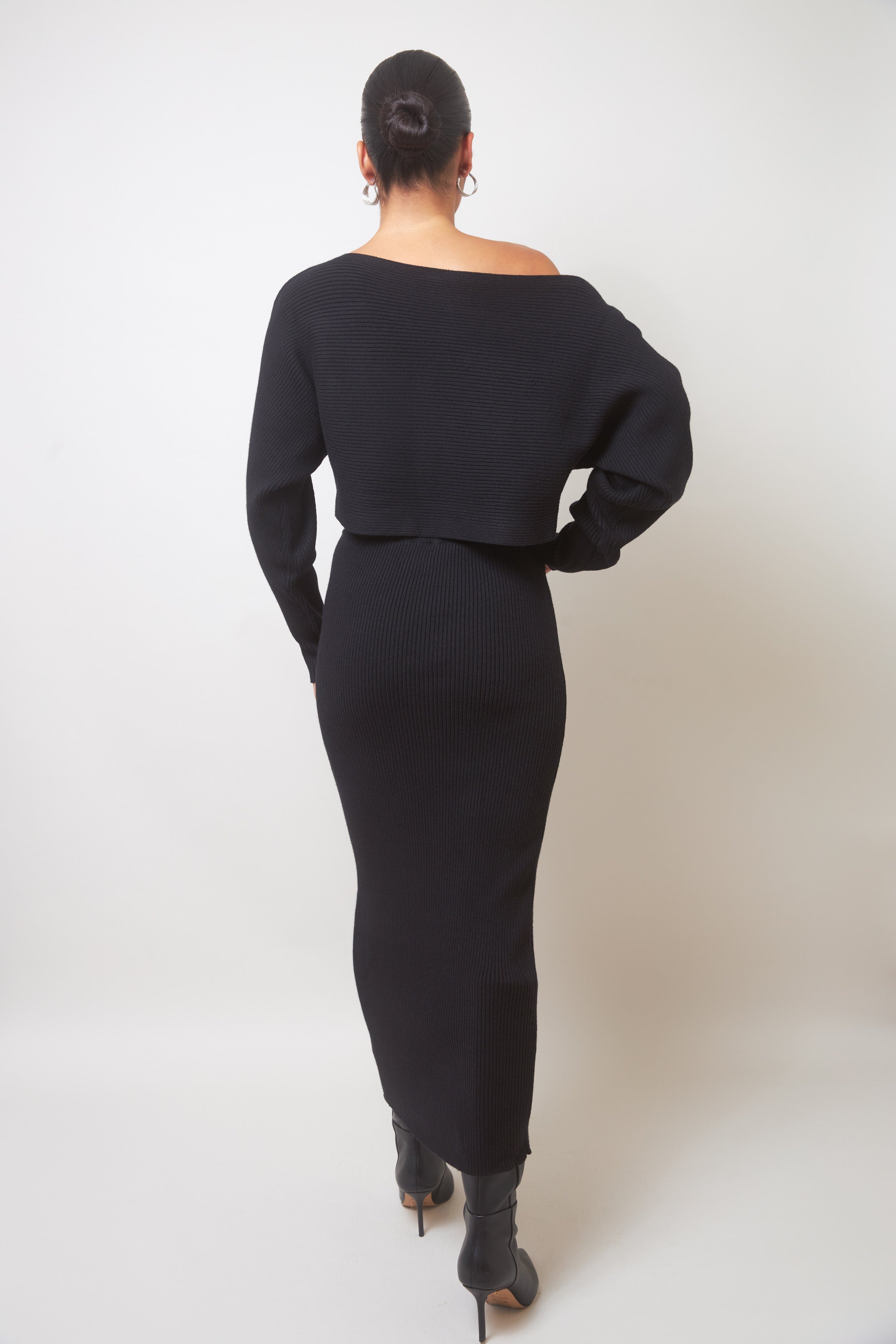 Modern Minimalism Black Two-Piece Ribbed Knit Skirt Set